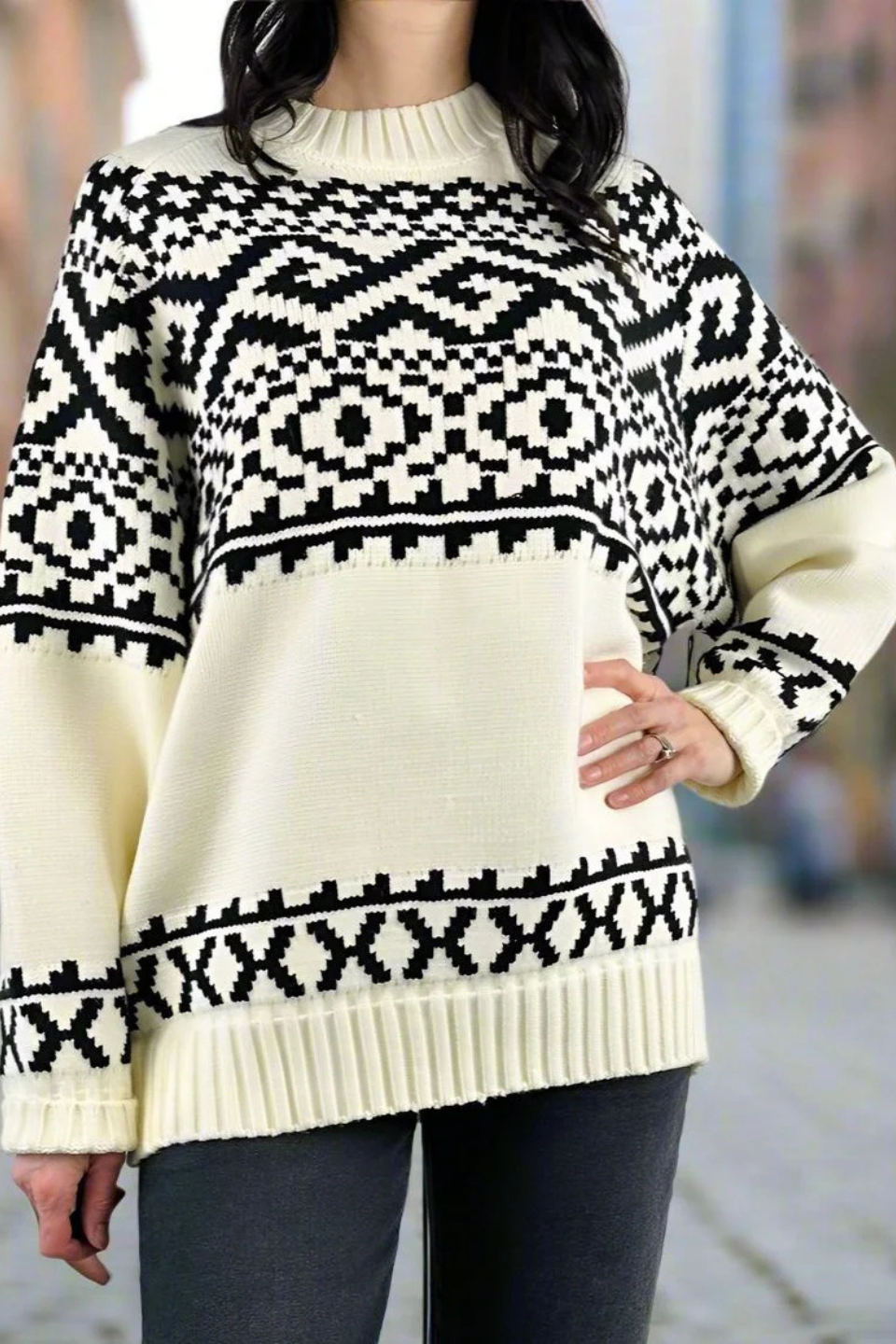 Fair Isle Sweater In Cream