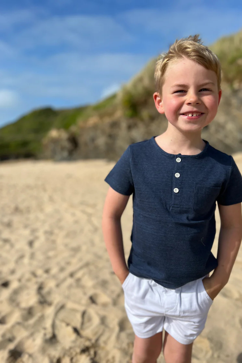 A classic navy ribbed short sleeved henley tee that no boy should be without!