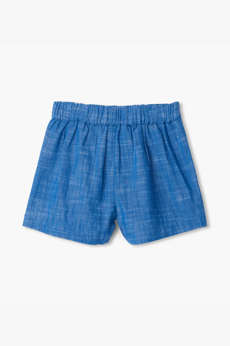 Sweet paperbag styling gives these chambray shorts an adorable fashion-forward look she'll love. The easy pull-on design means no fussing with buttons or zippers, perfect for little ones learning to dress themselves. Soft cotton construction keeps her comfortable through playdates, outings, and everyday adventures. The decorative waist tie adds a charming finishing touch that elevates any outfit. Parents will love how effortlessly these shorts transition from sandbox play to special occasions.