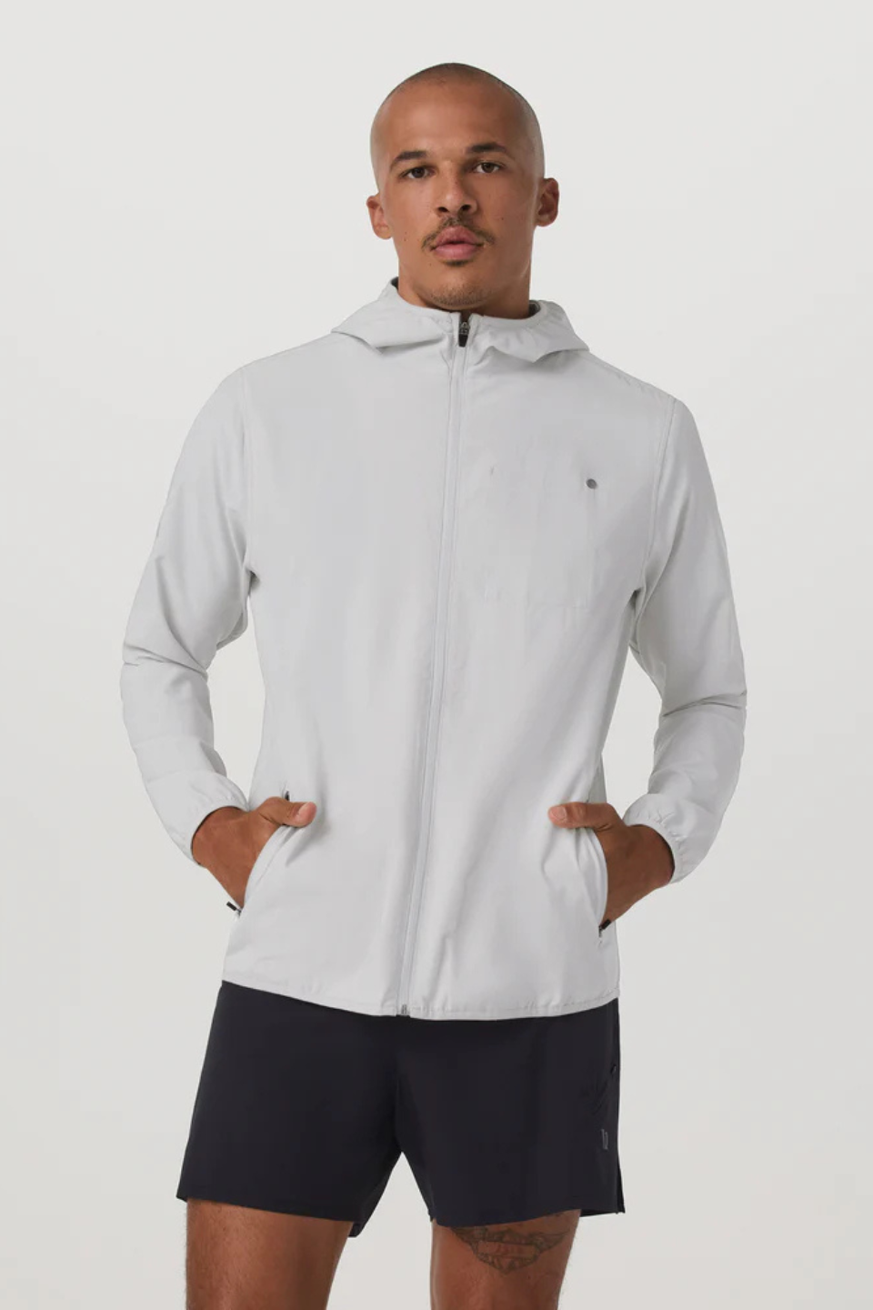 Take on the great outdoors with our men's hooded Outdoor Trainer Shell jacket. Crafted from lightweight, 4-way stretch performance material, it’s water-resistant, moisture-wicking, and ready for anything. With multiple zip pockets and a reflective logo, this jacket has you covered for every adventure.