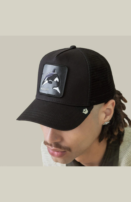 Cold-blooded in black and white. Apex stitched straight across the front, daring anyone to test the waters. Killer lives up to the name.