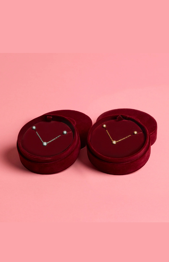 - A coordinated stud-and-necklace duo for easy everyday elegance.