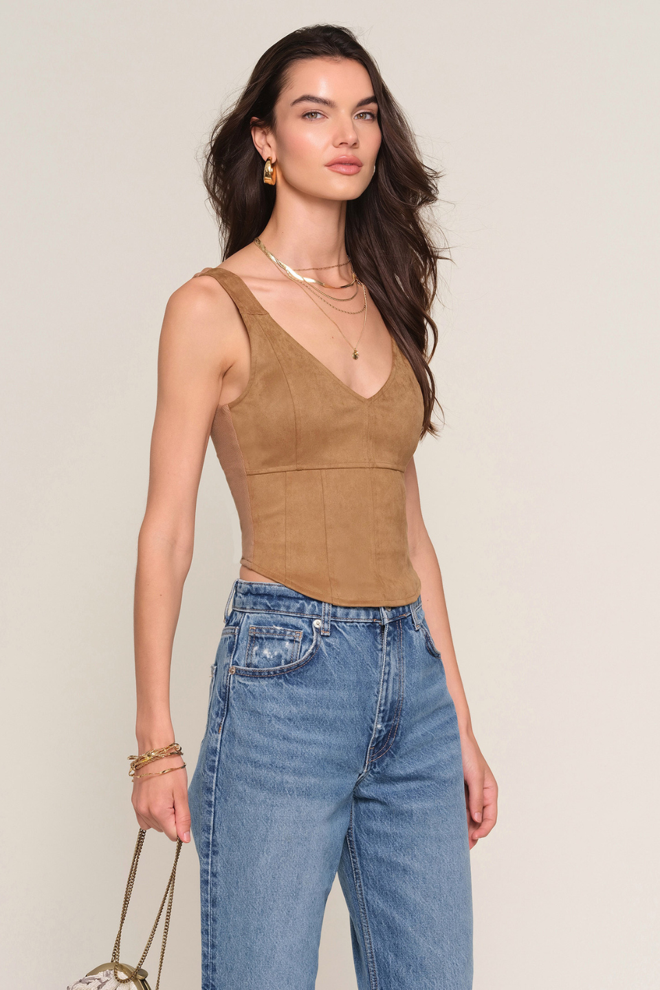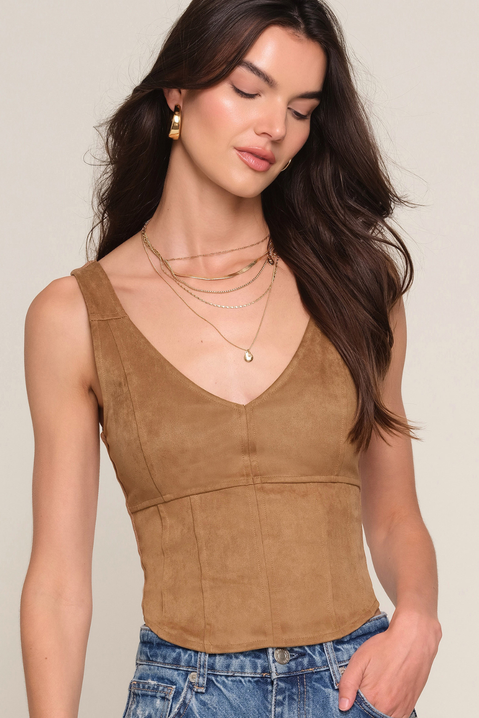 The Chelsea Top is a sleek suede tank designed for effortless, elevated styling. Crafted from soft, suede-finish fabric, it features a smooth, flattering fit that feels both comfortable and refined. The warm fawn hue adds a rich, neutral tone that pairs beautifully with denim, tailored trousers, or skirts. Minimal and sophisticated, the Chelsea Top is a versatile staple that transitions seamlessly from day to night.