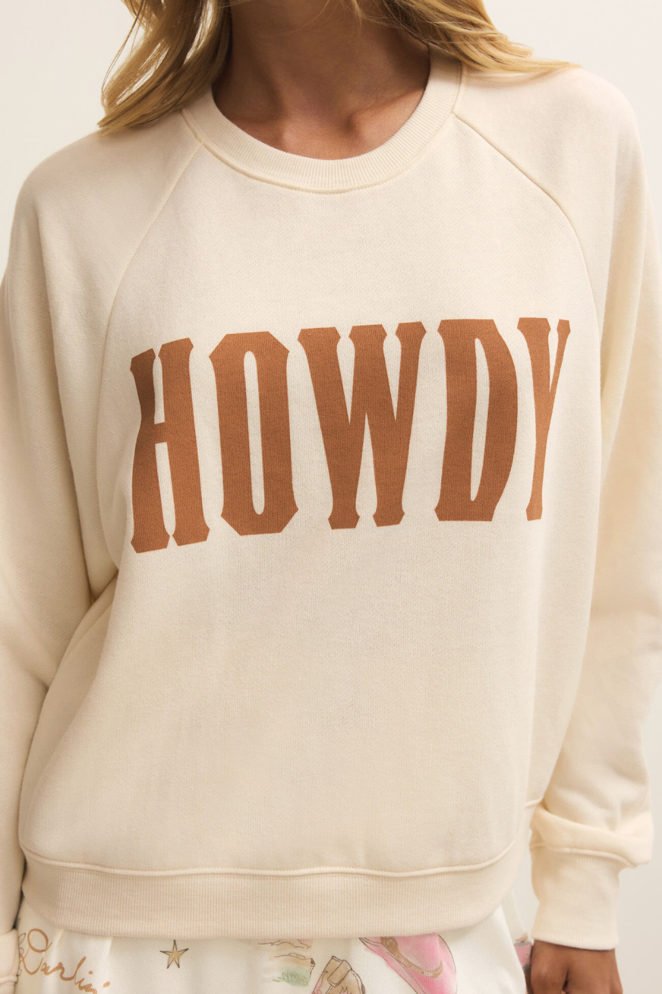 This relaxed sweatshirt from Howdy Sweatshirt brings signature Z Supply softness and easy style to your everyday loungewear lineup. Made from a midweight fleece blend with a classic crew neckline and a playful embroidered “Howdy” graphic, it’s ideal for slow mornings, errands, or kicking back at home. The relaxed fit drapes effortlessly over leggings, joggers, or denim for all-day comfort with a cool, casual look.
