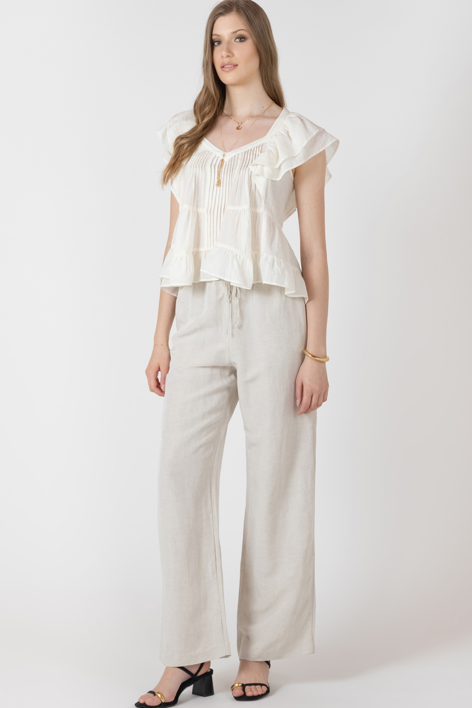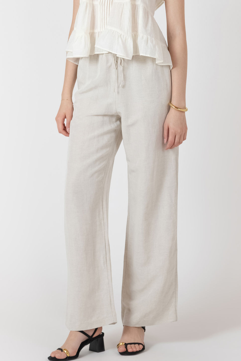 Lightweight, breathable, and effortlessly chic, Thea Pants in soft Natural feature a comfortable elastic waistband and a relaxed linen silhouette, perfect for everyday wear or weekend lounging. Pair with tees, blouses, or knit tops for a casual, polished look.