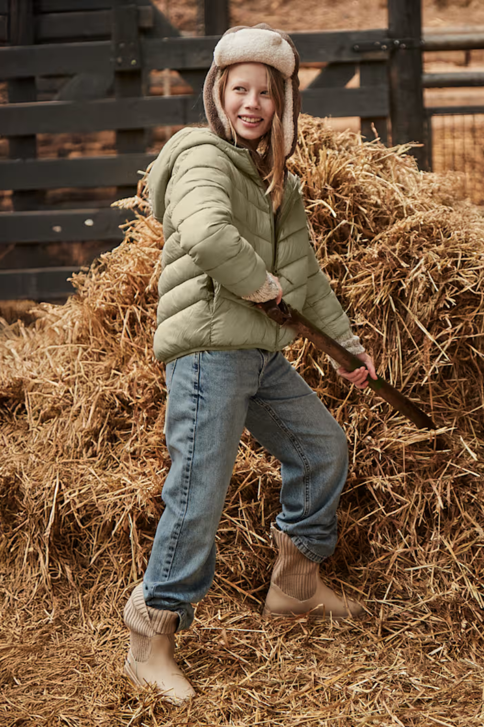 Pants for girls. Adjustable elastic waistband with buttons inside the waistband for a better fit. Comfortable denim fabric, perfect for everyday outfits. Design with multiple pockets.