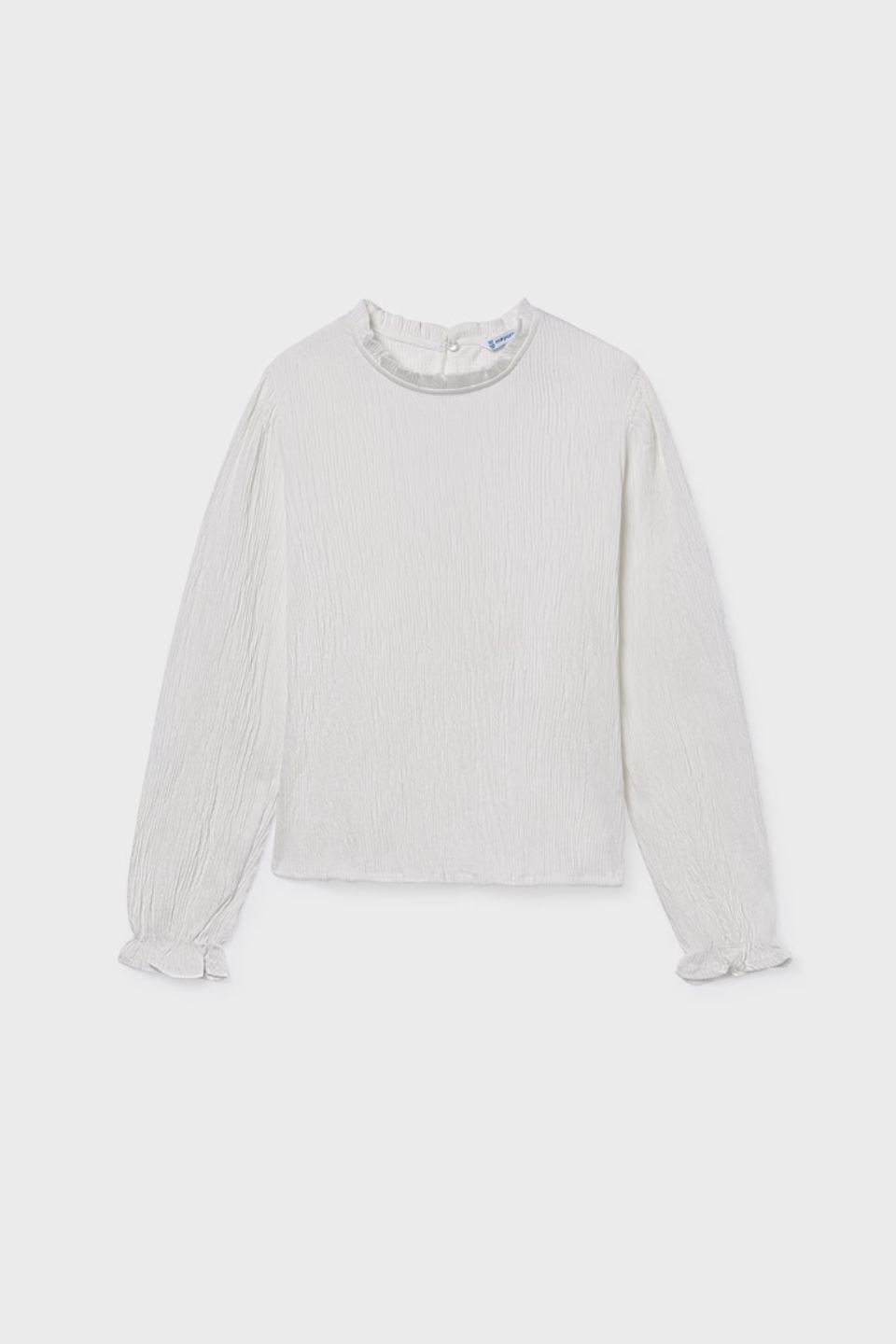 Long sleeved T-shirt for girls. Small opening on the back with a button fastening to allow the garment to be put on easily. Flowy bambula fabric.
